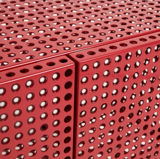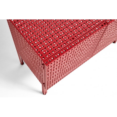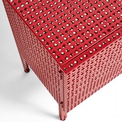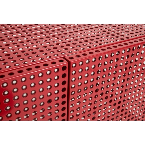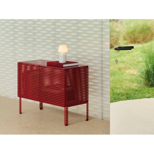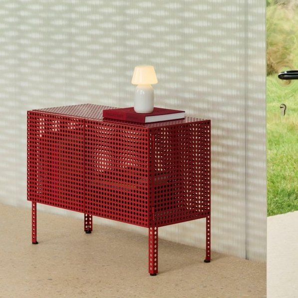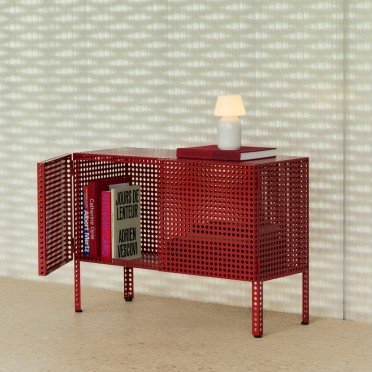 The Perforated Cabinet is the latest addition to the ongoing collaboration with HAY. Muller Van Severen is introducing the Perforated Cabinet - a take on storage that rethinks utility through the lens of structure, transparency, and form. Made from powder- coated steel and characterised by a grid of perforated holes, the design strikes a balance between concealment and display. The semi- transparent surface subtly veils its contents while keeping them visually accessible - a functional hybrid between open shelving and a closed cabinet. Available in wall-mounted and floor-standing variants, and offered in a variety of colours and sizes, the Perforated Cabinet brings colour and character to the art of keeping things in order.