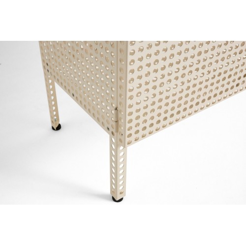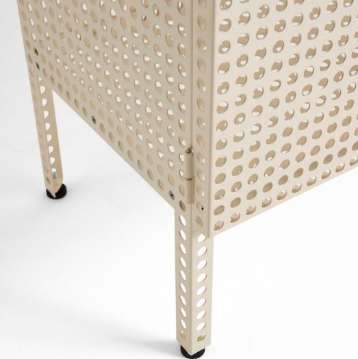 The Perforated Cabinet is the latest addition to the ongoing collaboration with HAY. Muller Van Severen is introducing the Perforated Cabinet - a take on storage that rethinks utility through the lens of structure, transparency, and form. Made from powder- coated steel and characterised by a grid of perforated holes, the design strikes a balance between concealment and display. The semi- transparent surface subtly veils its contents while keeping them visually accessible - a functional hybrid between open shelving and a closed cabinet. Available in wall-mounted and floor-standing variants, and offered in a variety of colours and sizes, the Perforated Cabinet brings colour and character to the art of keeping things in order.
