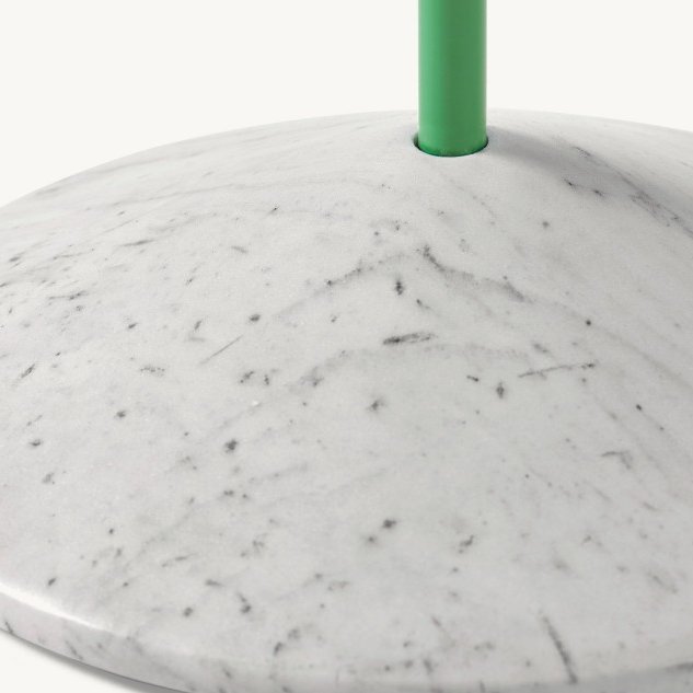 Muller Van Severen, the Belgian design couple renowned for their playful minimalism, now present Standing Lamp Marble, a continuation of their iconic Hanging Lamps. This new addition offers the same minimalist image yet consists of a metal armand a marble foot. Just like all designs of Muller Van Severen, the object’s construction is completely transparent, as if a kid had drawn it. Although sober and stylized, the lamp adds a romantic feeling to the room, reminding us of the light under a street lantern. This might just be Muller Van Severen’s most romantic design.