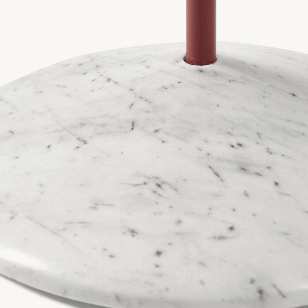 Muller Van Severen, the Belgian design couple renowned for their playful minimalism, now present Standing Lamp Marble, a continuation of their iconic Hanging Lamps. This new addition offers the same minimalist image yet consists of a metal armand a marble foot. Just like all designs of Muller Van Severen, the object’s construction is completely transparent, as if a kid had drawn it. Although sober and stylized, the lamp adds a romantic feeling to the room, reminding us of the light under a street lantern. This might just be Muller Van Severen’s most romantic design.