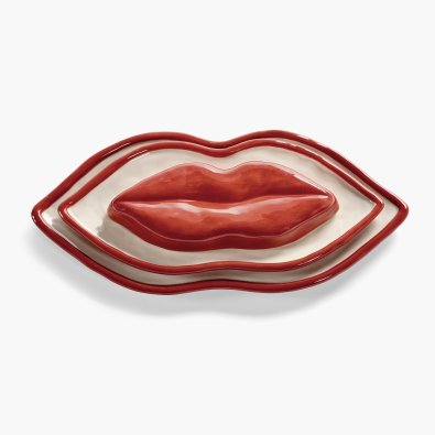 The earthenware bowls from the Les Objets Mouleversants collection, shaped like red lips, add a dreamy twist to your table. Available in three stackable sizes, they create a striking tabletop piece. Also perfect as a catchall for jewelry and other small treasures.