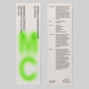 Orika is a brand dreamed in New York and crafted in Japan, uniting the best of both cultures. Named from ori weavingand ka aroma, each scent weaves together time, place, and emotion. Featuring the world’s first gradient, aroma-changing incense, every stick is handmade and infused with a touch of magic to enchant everyday rituals. Light the tip of the incense stick. Gently blow out the flame. Place the incense in a holder on a flat, heat-resistant surface, away from drafts and flammable materials. Each stick burns for approximately 30 minutes.