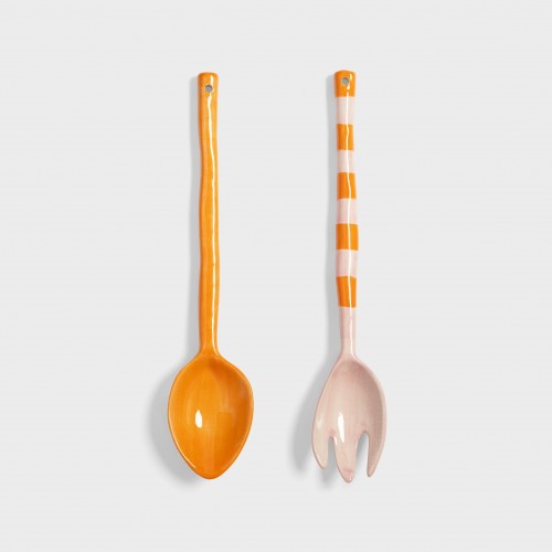 Elevate your table setting with this set of sleek salad servers, crafted to perfectly complement the artistic salad bowl and small bowls. Made from stoneware and featuring a minimalist design, these servers are both functional and stylish. Ideal for tossing and serving your favorite salads, they add a touch of elegance to any meal.