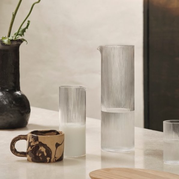 Fabriquée avec une précision méticuleuse, la cruche à eau Ripple soufflée à la bouche incarne l'élégance intemporelle de la famille Ripple bien-aimée.