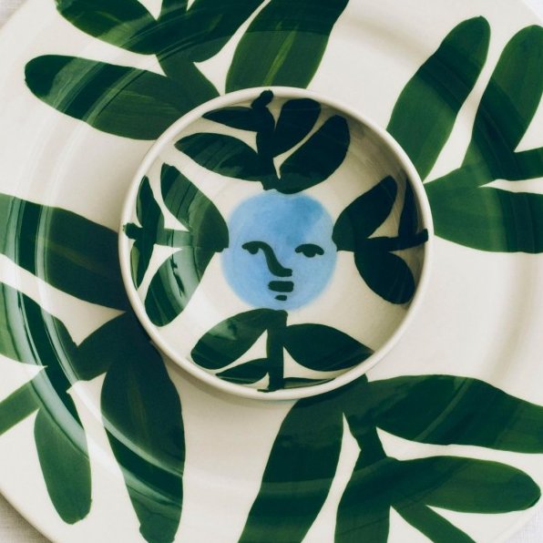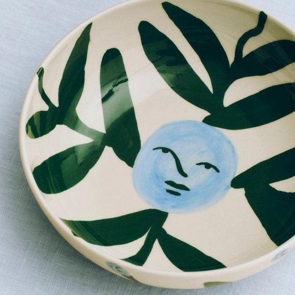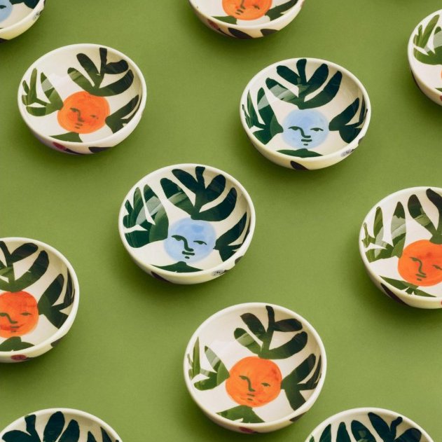 La collaboration avec l'artiste américaine Emma Kohlmann, reconnue internationalement, permet d'introduire son univers distinct dans la maison, sous la forme d'une collection de charmants articles de table en céramique.