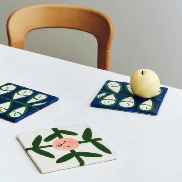 La collaboration avec l'artiste américaine Emma Kohlmann, reconnue internationalement, permet d'introduire son univers distinct dans la maison, sous la forme d'une collection de charmants articles de table en céramique.