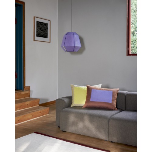 Chaque abat-jour est tissé à la main avec un fil de laine de nylon autour d'une armature en acier revêtu de poudre, ce qui donne des abat-jours individuels dont l'aspect et la surface esthétique varient légèrement. Bonbon constitue un objet décoratif puissant même lorsque l'ampoule n'est pas allumée.