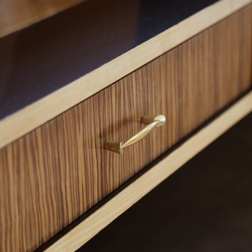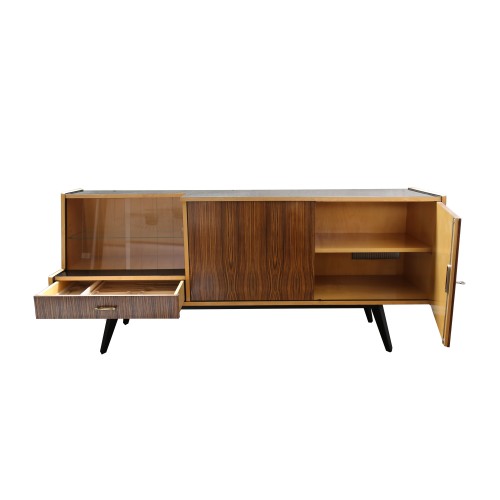Sideboard vintage des années 60 composé d'un tiroir, d'une vitrine et d'un espace rangement.